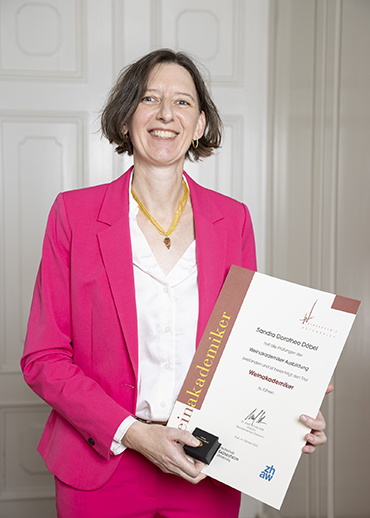 Der Weinakademie Topstudent Award ging an Sandra Dorothee Döbel. Er umfasst Fortbildungen und Weinstudienreisen für Weinakademiker in Österreich, Deutschland, Südtirol und der Schweiz. |