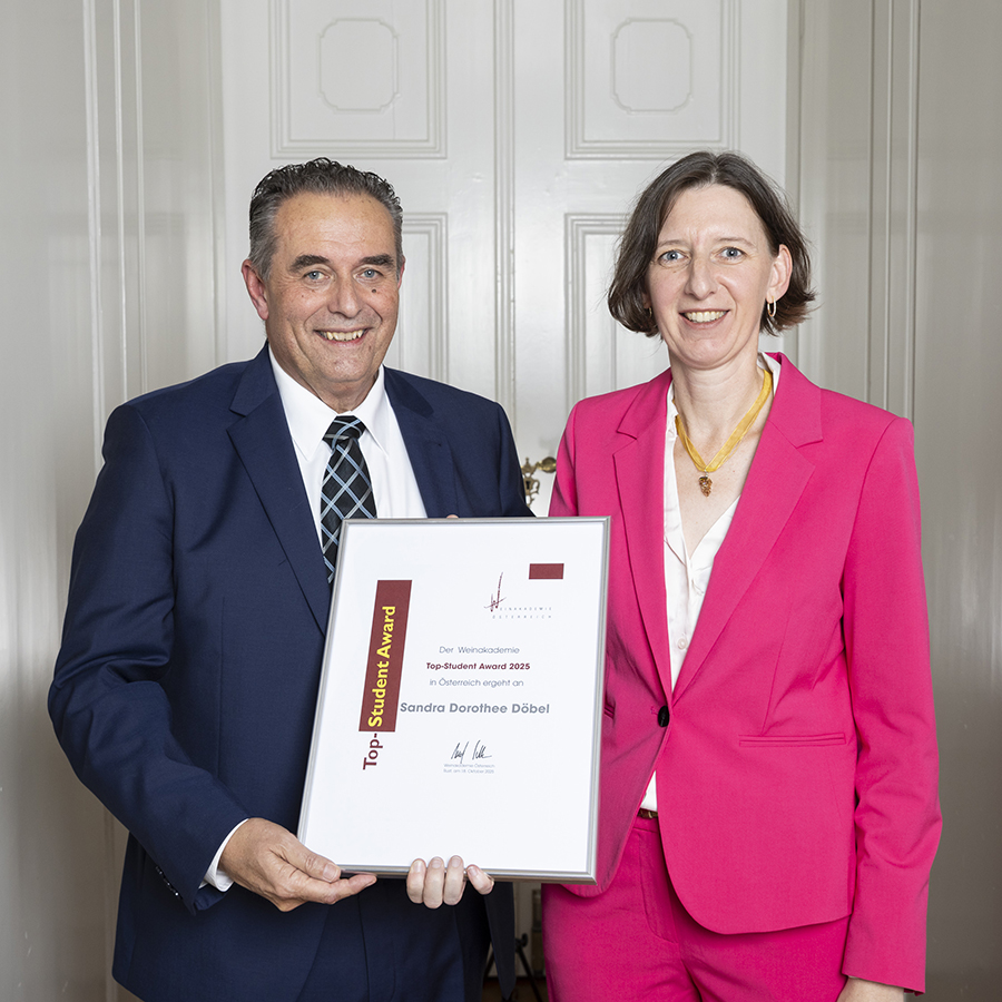 Der Weinakademie Top Student Award ging an Nadja Bleuler. Der/die beste Absolvent/in erhält ein Jahr lang eine Einladung bei allen Weiterbildungsveranstaltungen für Weinakademiker der Weinakademie Österreich kostenlos teilzunehmen. Den besten der drei Topstudents (Wädenswil, Rust und Geisenheim) winkt auch ein Schnuppertag beim Master of Wine Kurs in Rust.