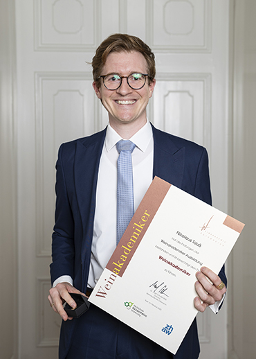 Die Selection Schwander Tasting Trophy ging an Thomas Prosser. Dieser Preis ist mit EUR 1.000,- dotiert und geht an den/die Absolvent/in mit den besten Ergebnissen in den Verkostungsprüfungen der Diploma-Ausbildung.